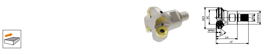 Отличное решение для фрезерования поверхностей с углом в плане 45°, с никелированным покрытием корпуса, с семигранной двухсторонней пластиной с 14 режущими кромками.