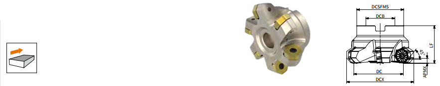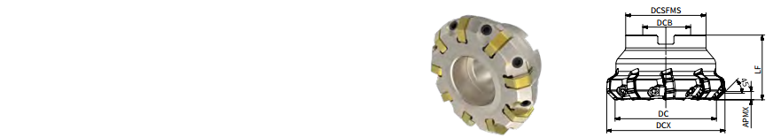 Отличное решение для фрезерования поверхностей с углом в плане 45°, с никелированным покрытием корпуса, с семигранной двухсторонней пластиной с 14 режущими кромками.