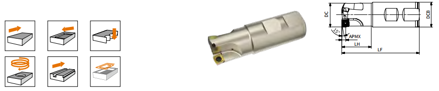 Фреза для работы на высоких подачах с углом в плане 15 градусов