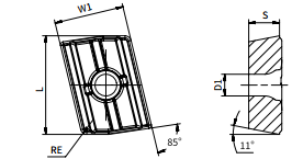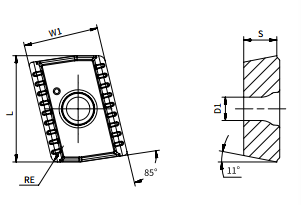 Центральная пластина | Обозначение пластины | L | W1 | S | RE | D1 |