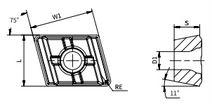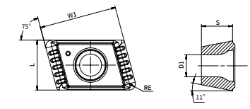 Центральная пластина | Обозначение пластины | L | W1 | S | RE | D1 |