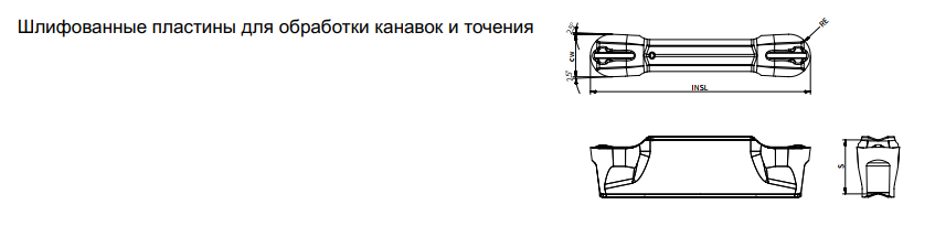 Вид пластины | Обозначение пластины | Ширина посадочного места | Режимы резания | Условия обработки | ● Хорошие ![]() ![]() |