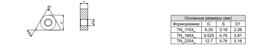 Пластины | Обозначение пластины | RE (mm) | Условия обработки | ● Хорошие ![]() ![]() |