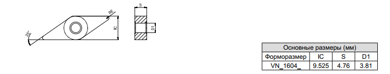 Негативная пластина VNMG 35° (ромб)